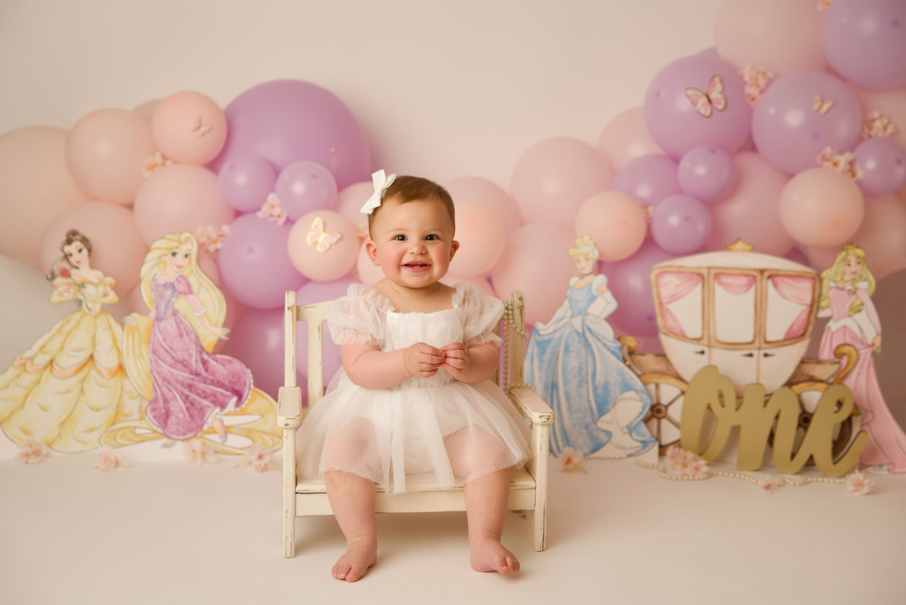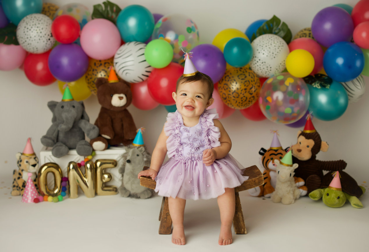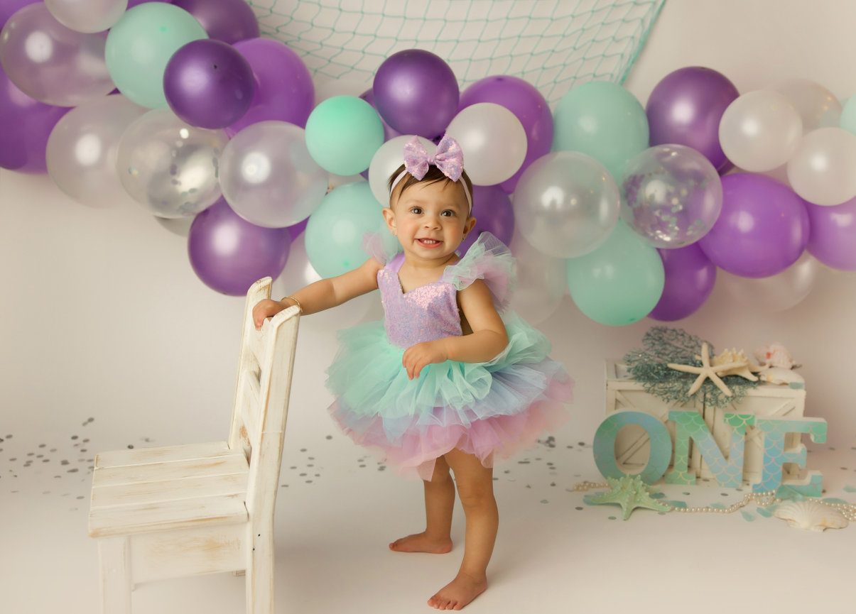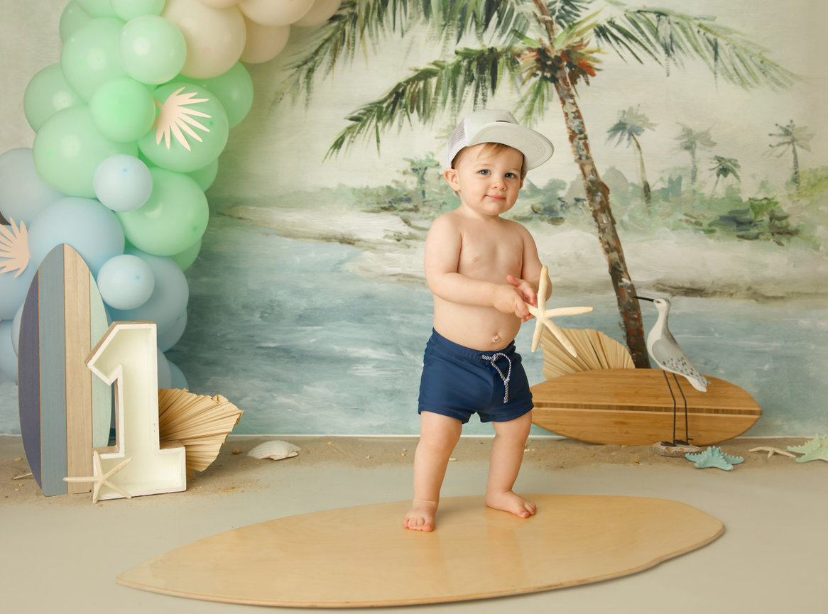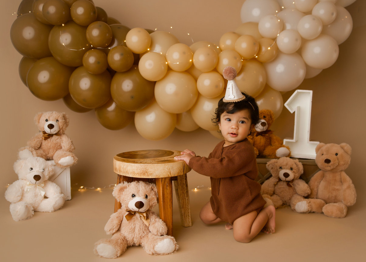 - ONE custom backdrop with banner, balloon garland and props to coordinate with any theme in studio.