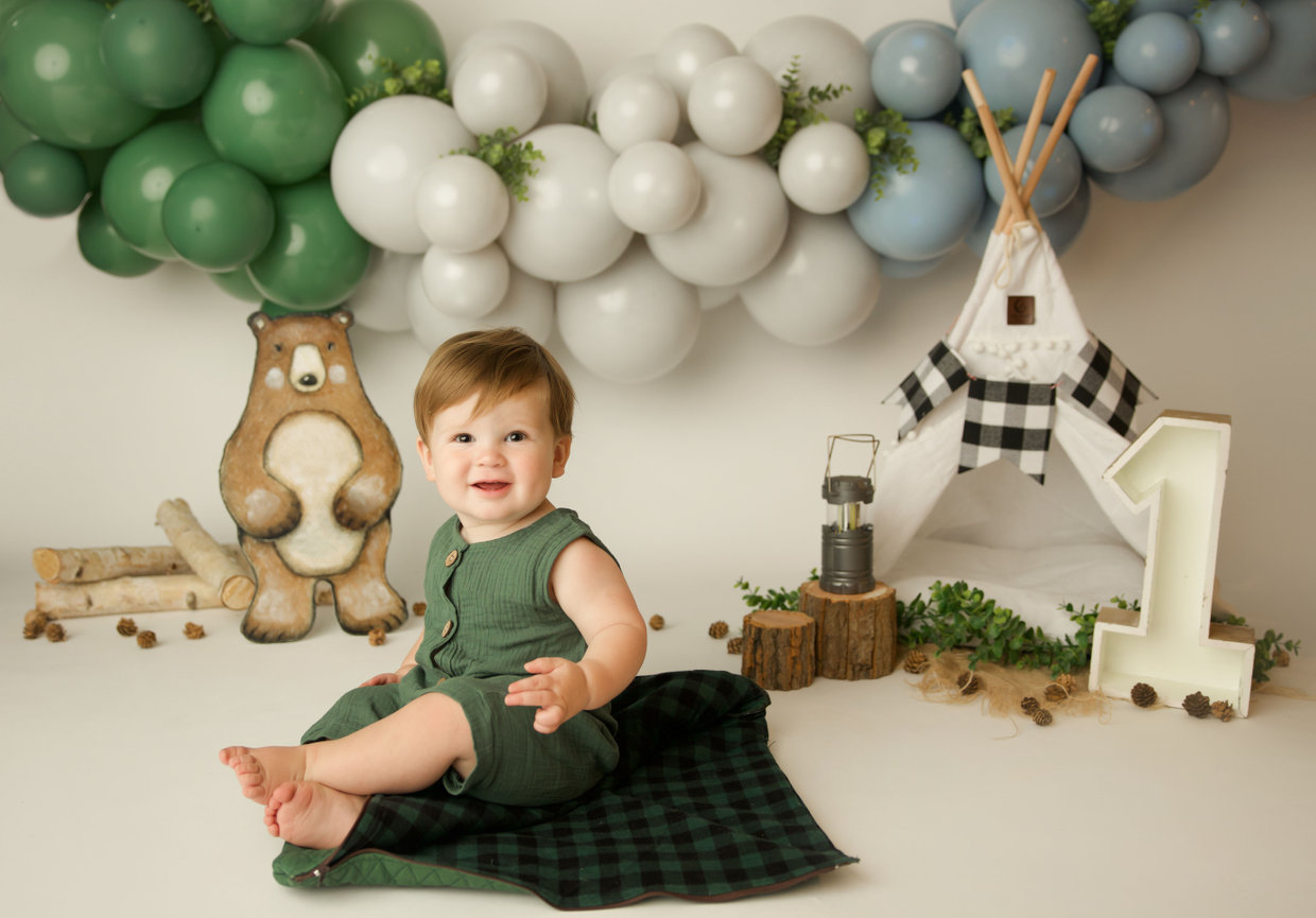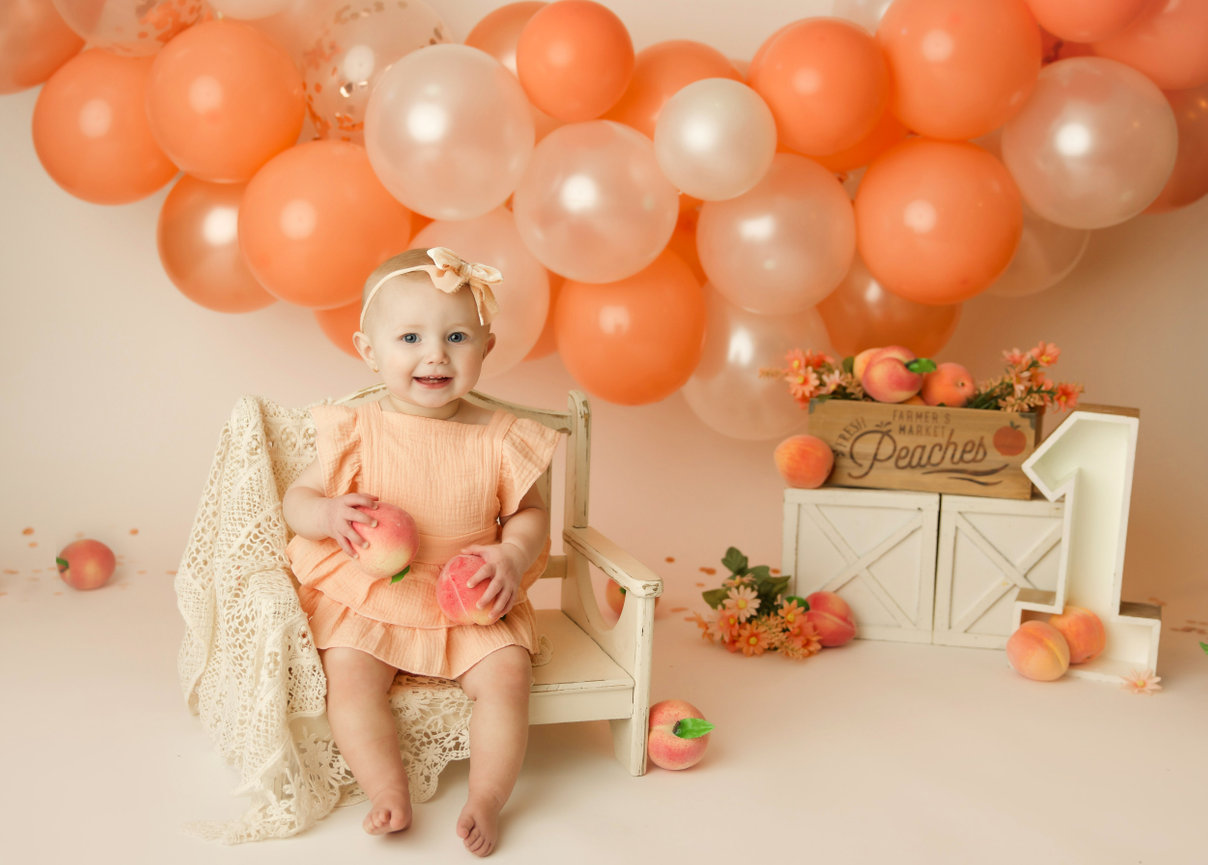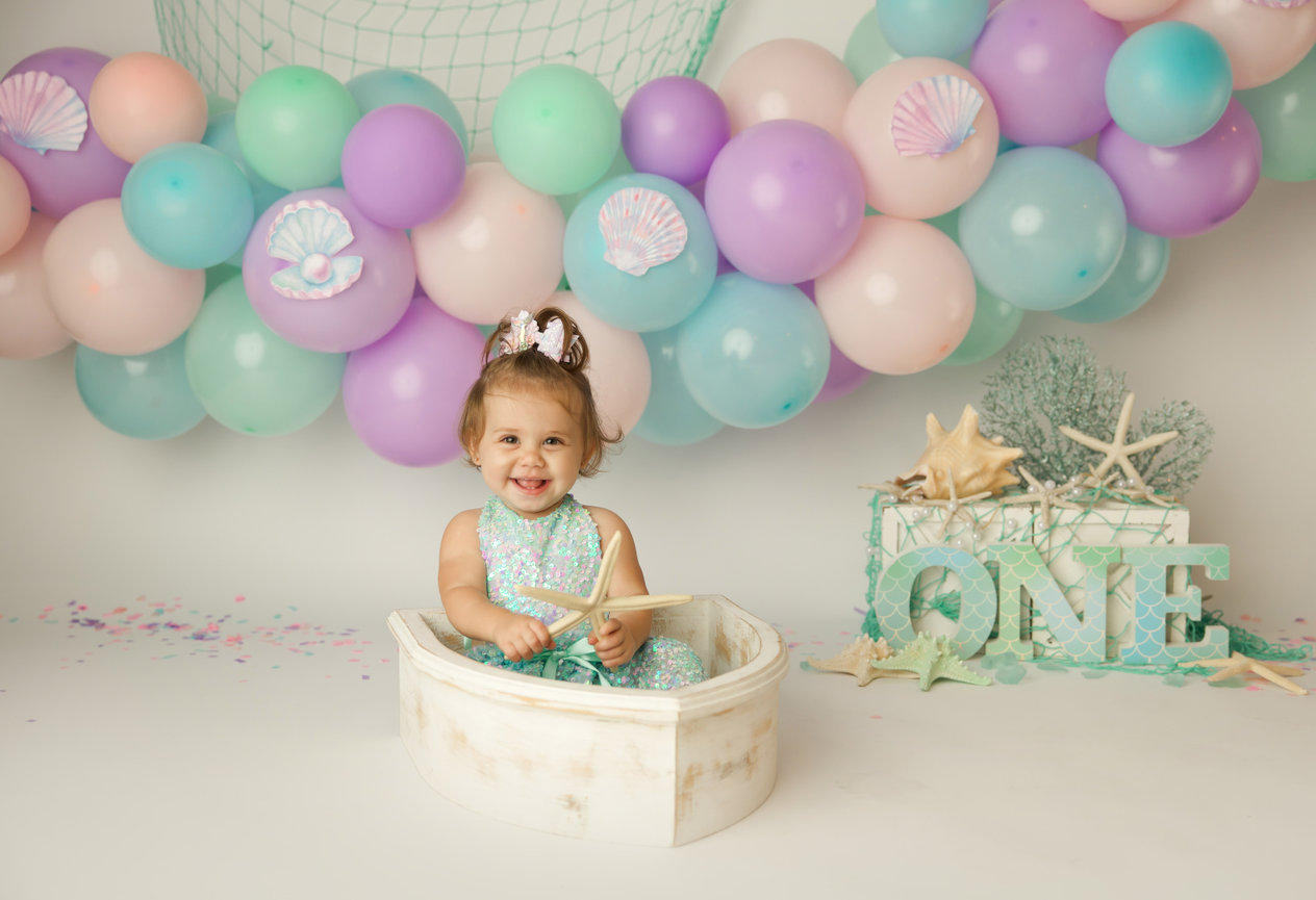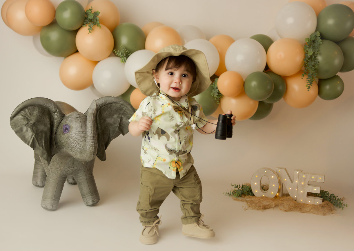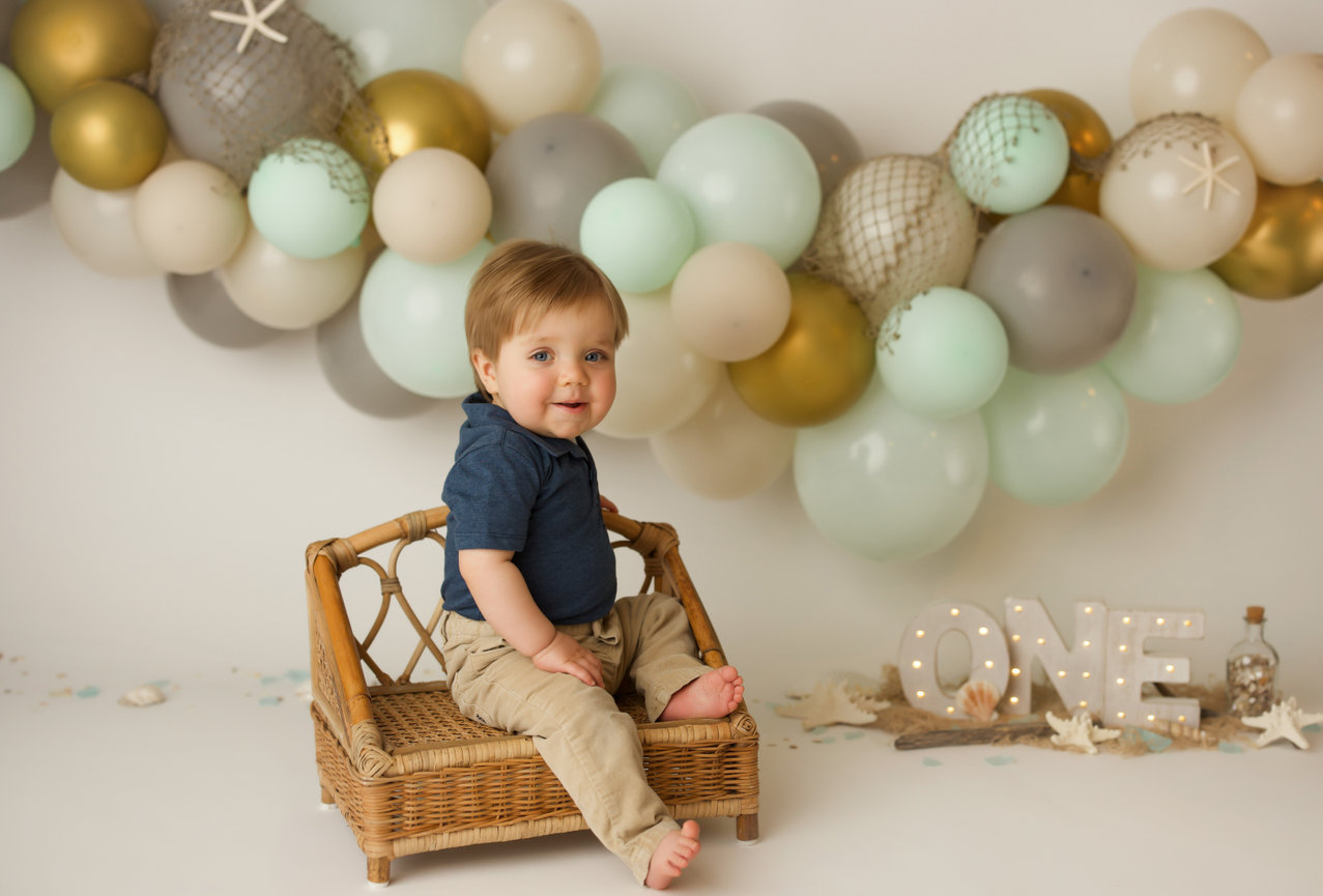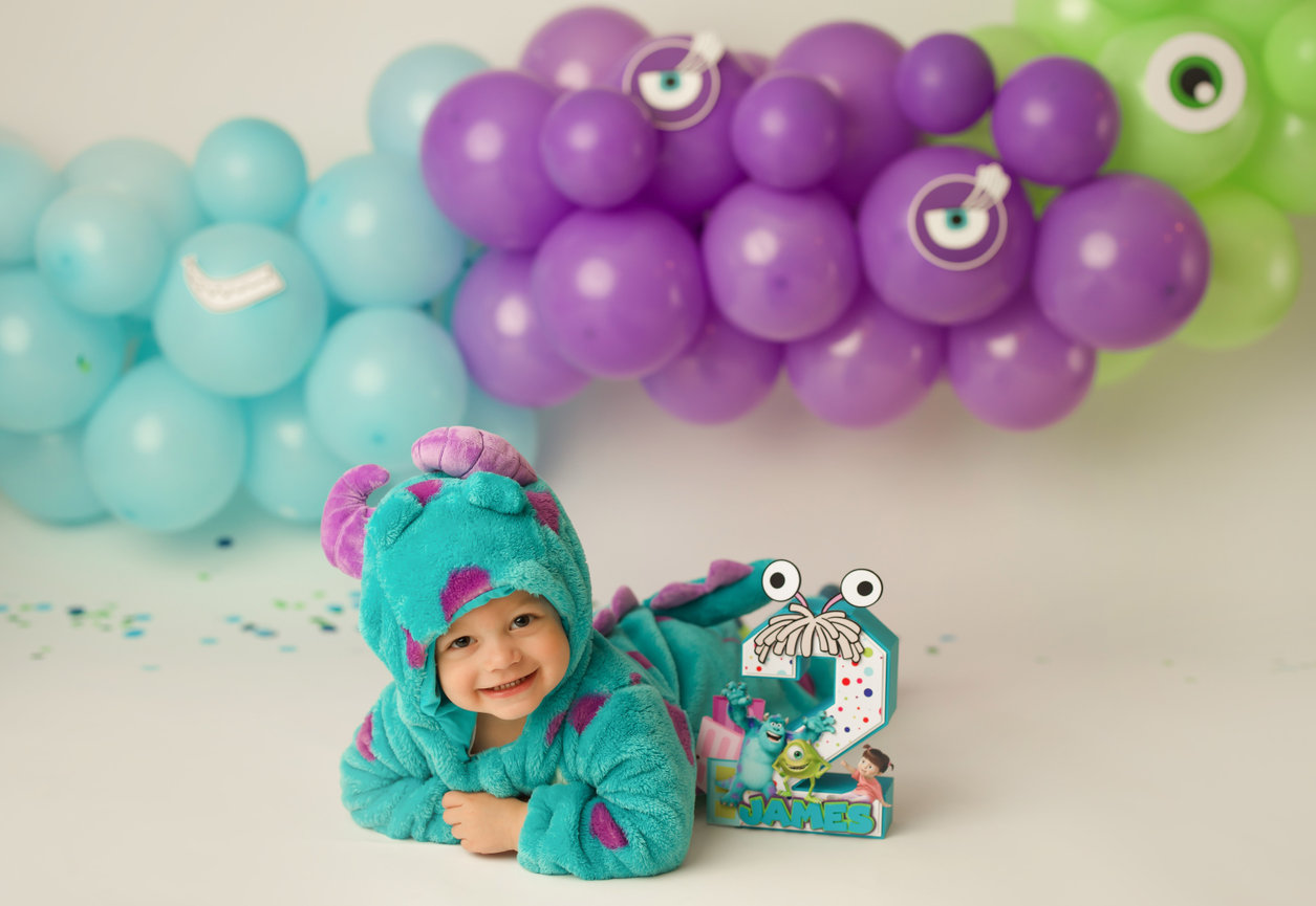 - ONE custom backdrop with banner, balloon garland and props to coordinate with any theme in studio.