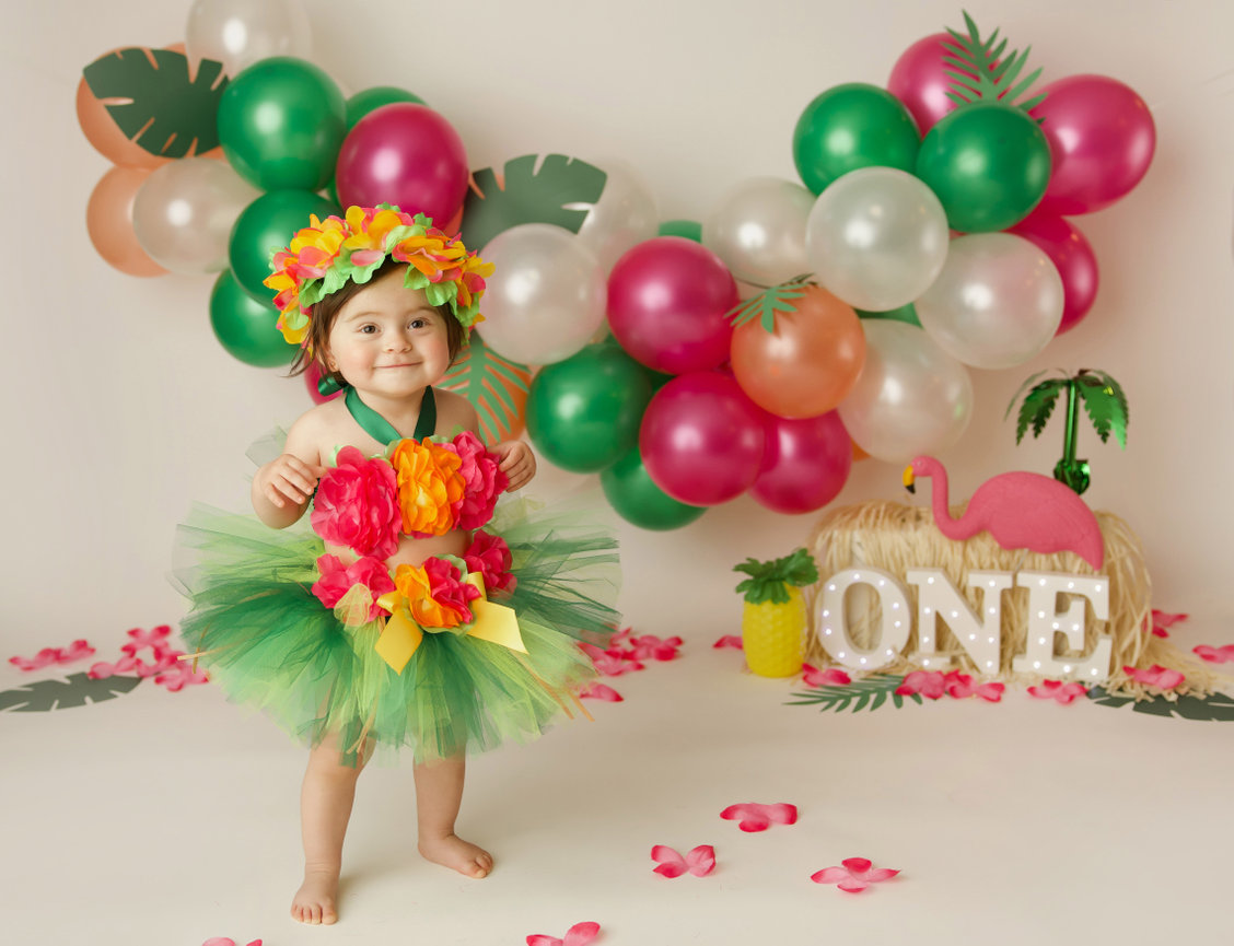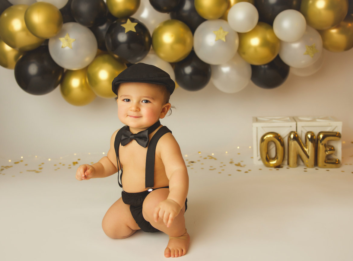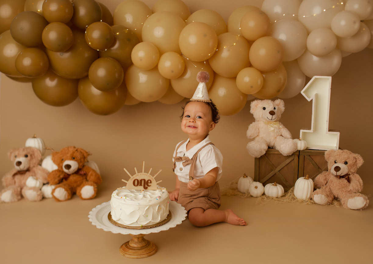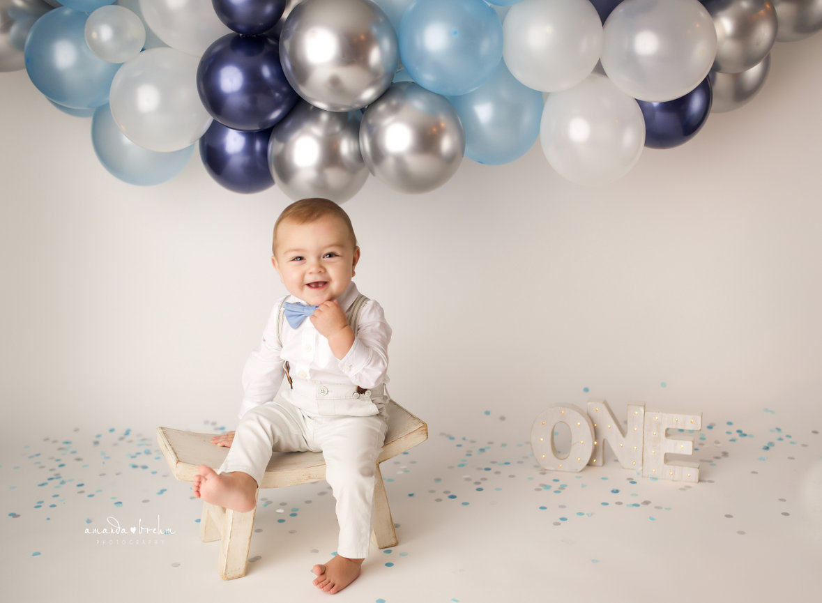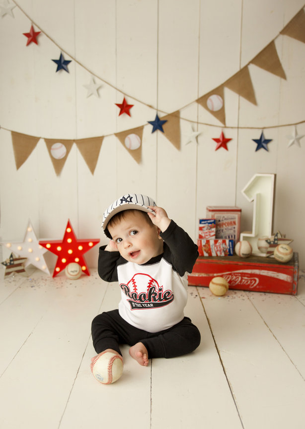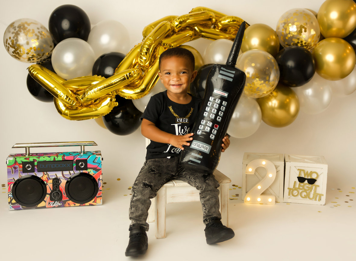 - ONE custom backdrop with banner, balloon garland and props to coordinate with any theme in studio.