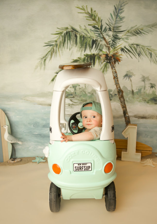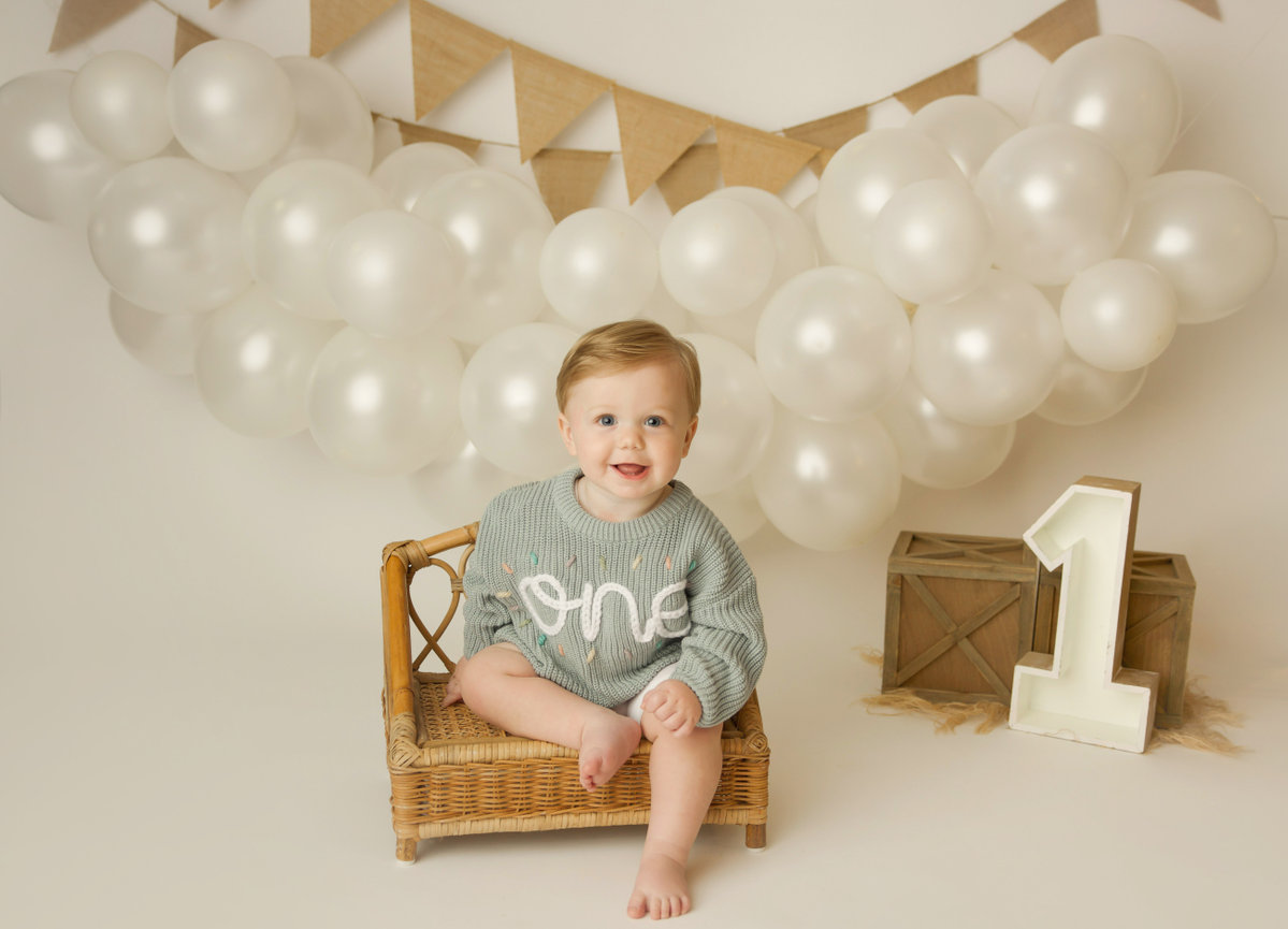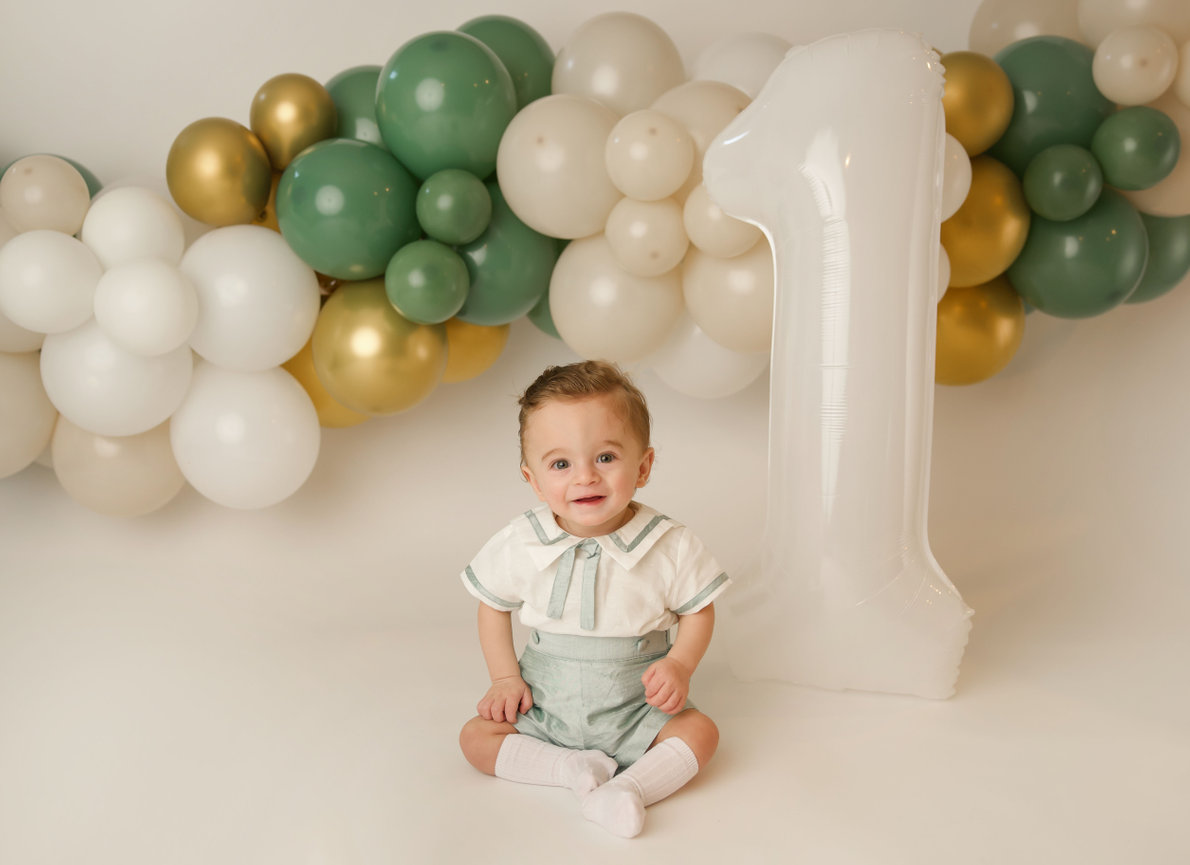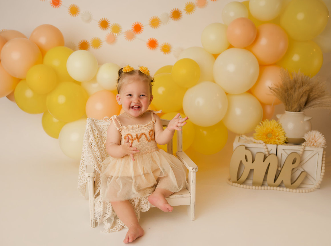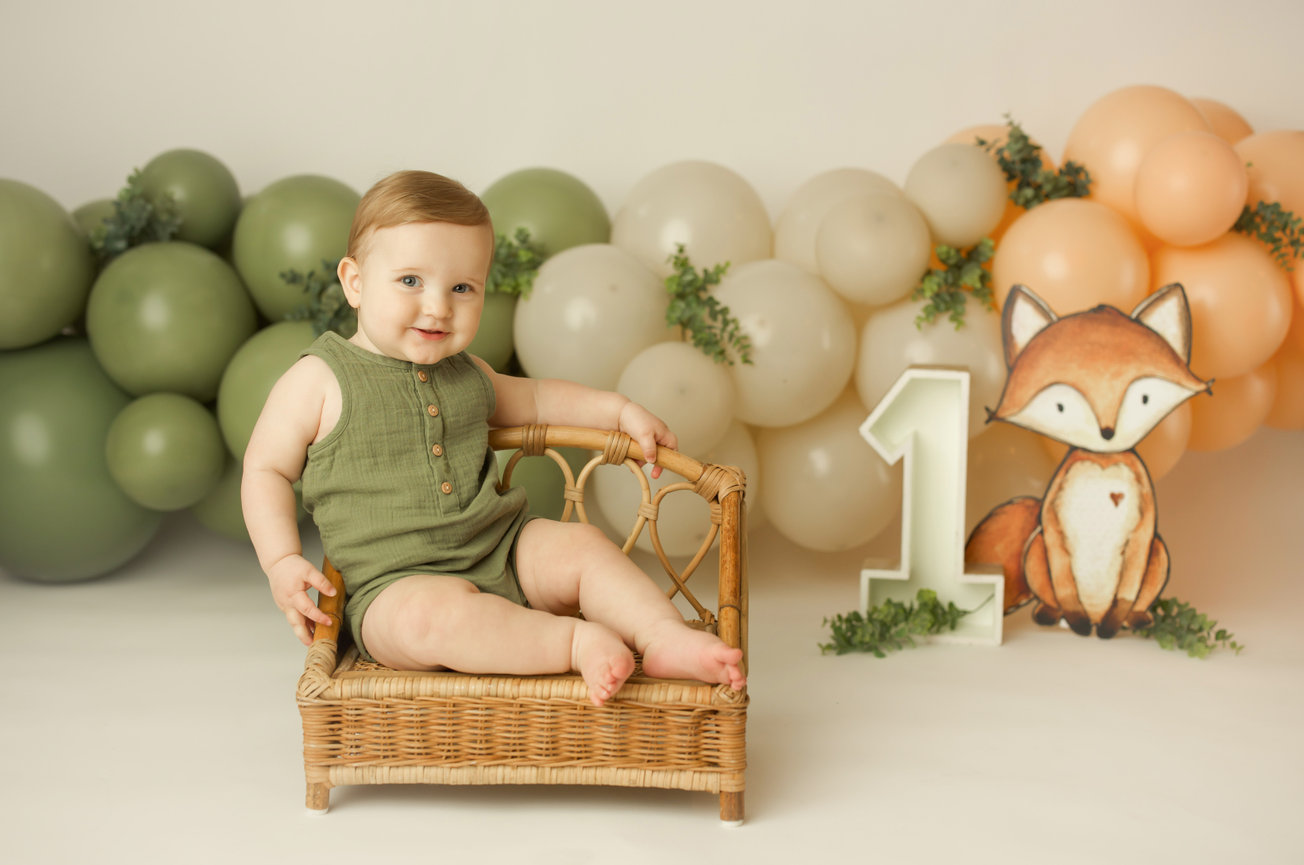 - ONE custom backdrop with banner, balloon garland and props to coordinate with any theme in studio.