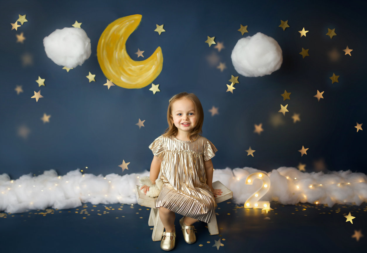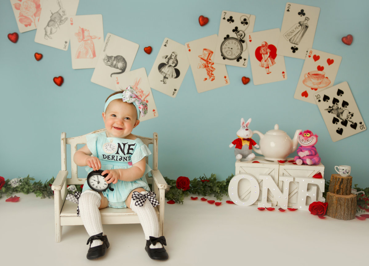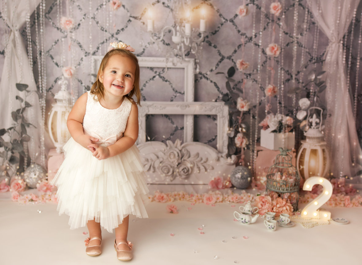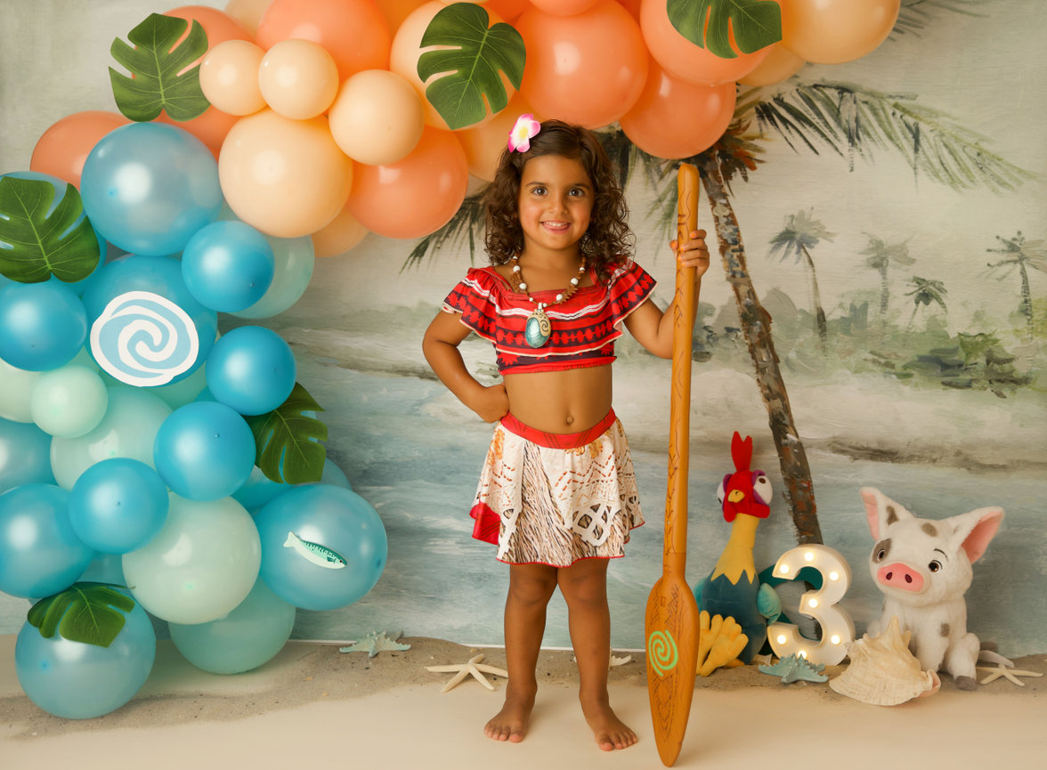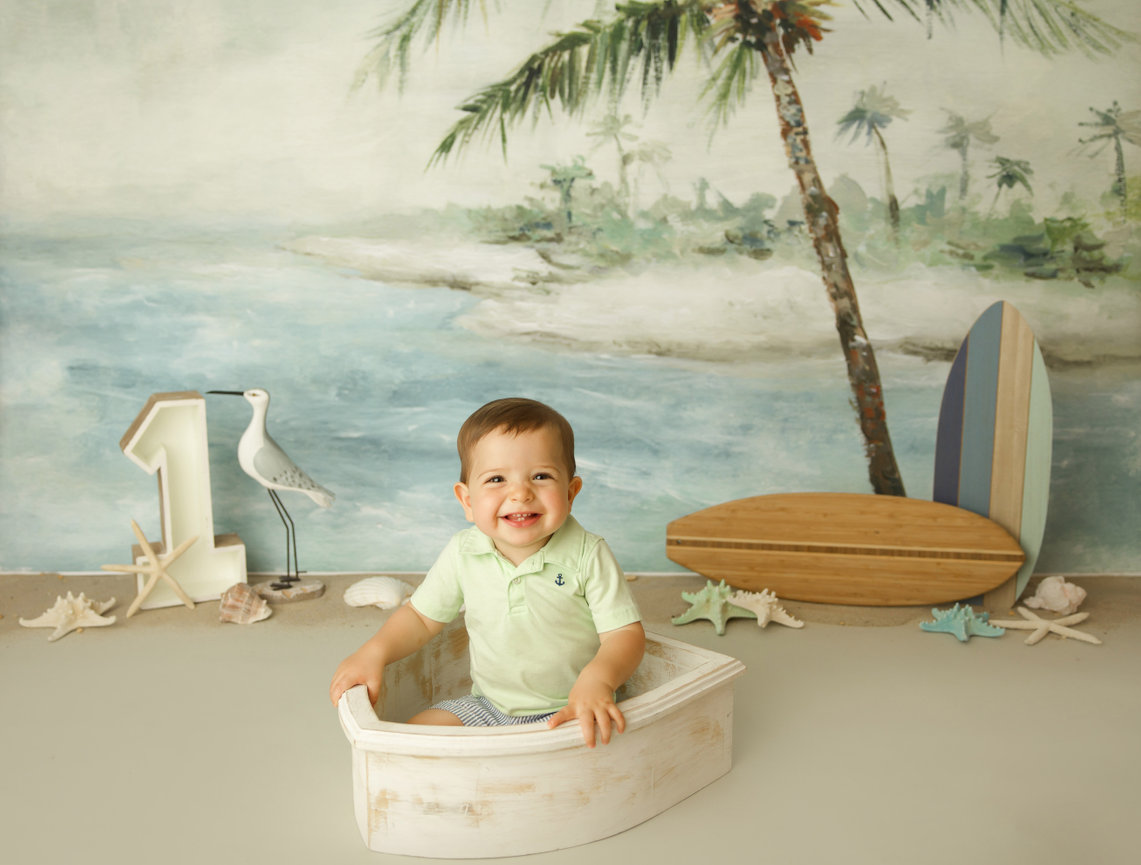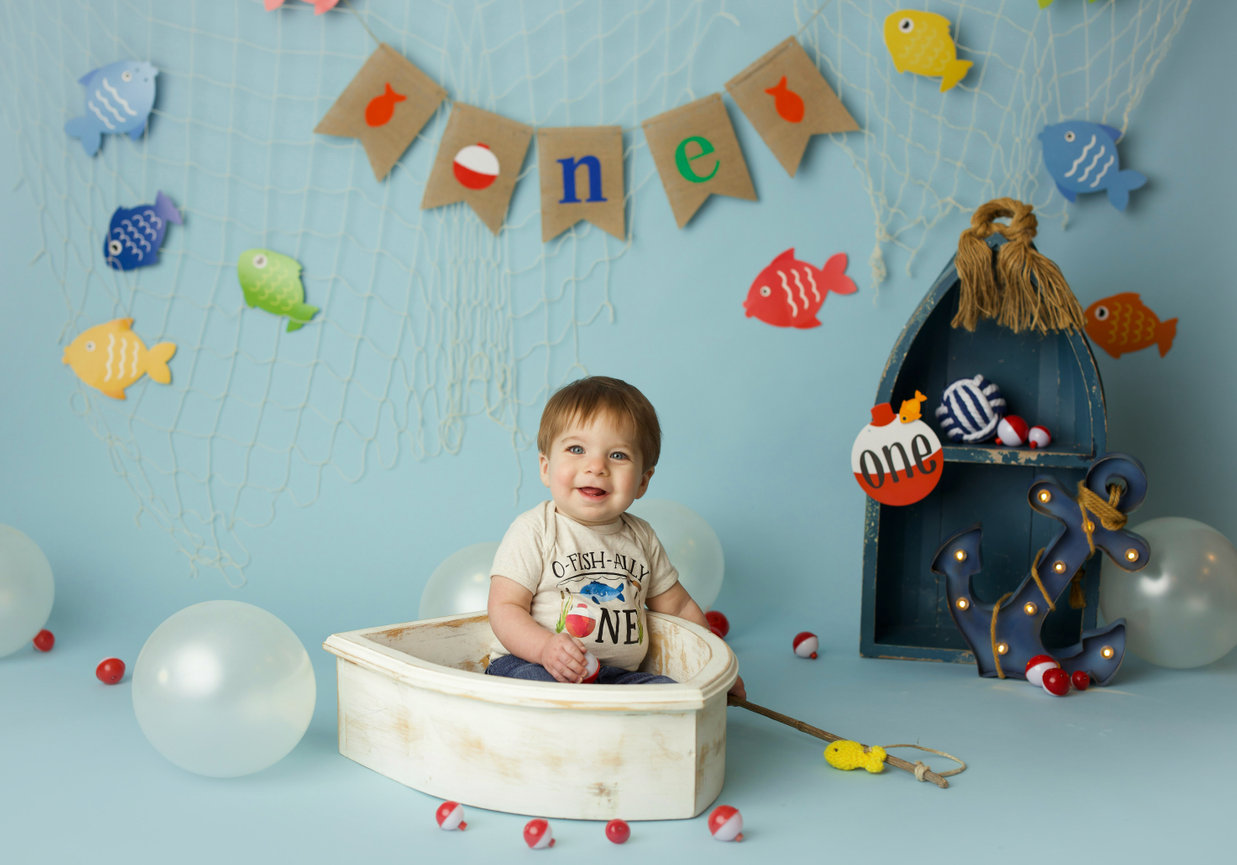 - ONE custom backdrop with banner, balloon garland and props to coordinate with any theme in studio.